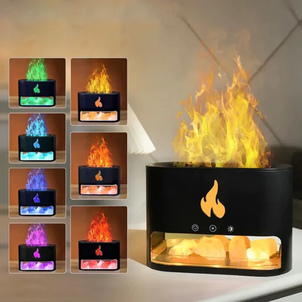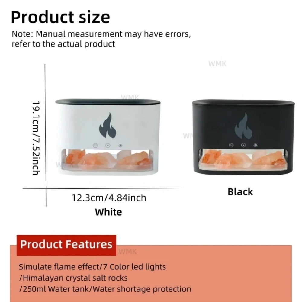 Diffuseur d’Arôme à Flamme Colorée en Pierre de Sel – Humidificateur 3-en-1 – Diffuseur d’arôme à flamme colorée en pierre de sel Humidificateur